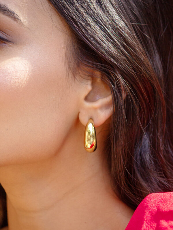 Description:- The Glint Curve Hoop earrings feature a smooth, flowing design that catches the light beautifully. With their bold curves and modern look, these hoops add a unique touch of elegance to any outfit.