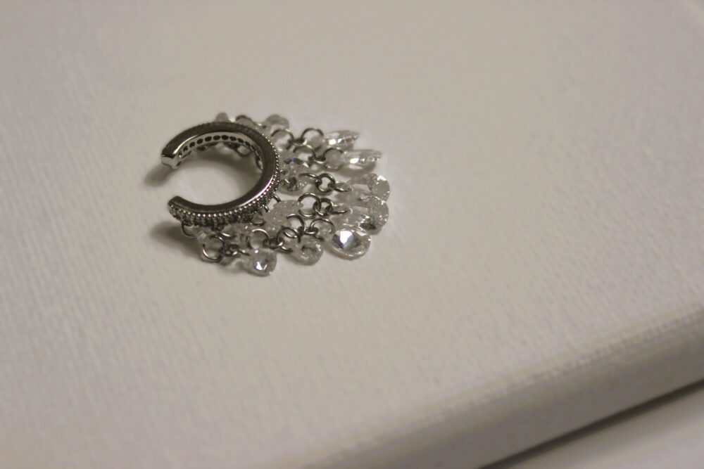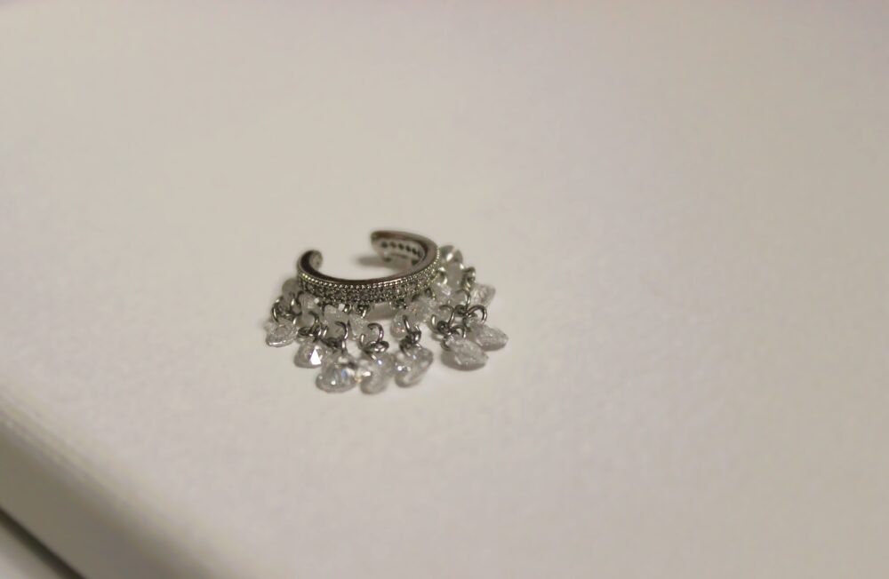 Delicate and luminous, the Lunara Earcuff shimmers with soft crystal drops in a sleek silver finish.