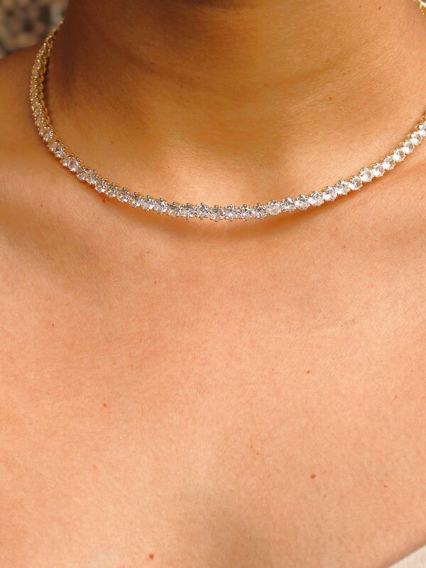 Designed to sit elegantly around your neckline, it’s a piece that exudes contemporary glamour and confident style, perfect for elevating any outfit.
