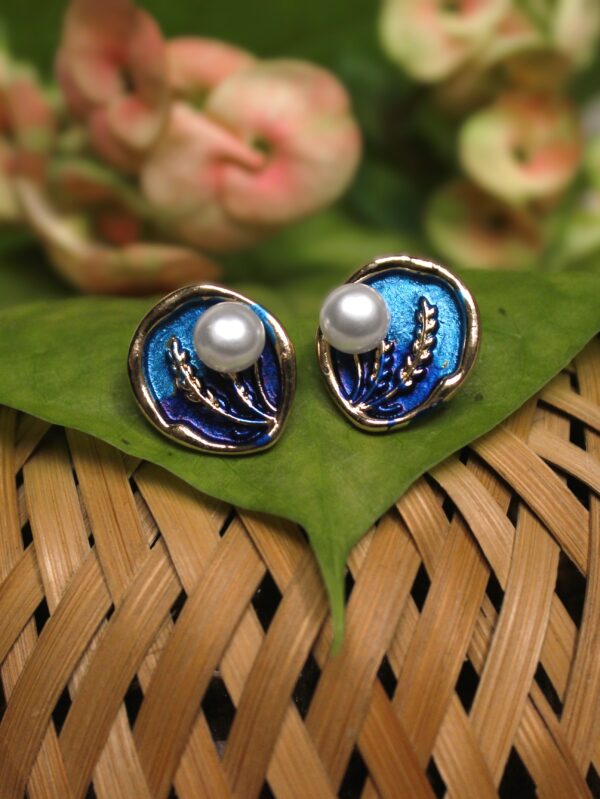 Make a statement with these elegant studs featuring creamy pearls set on a deep, rich Blue-colored base.
