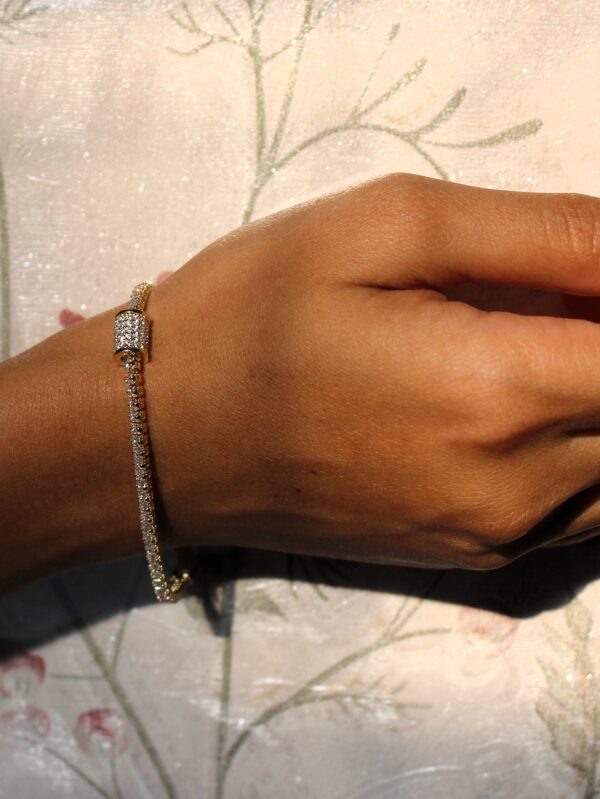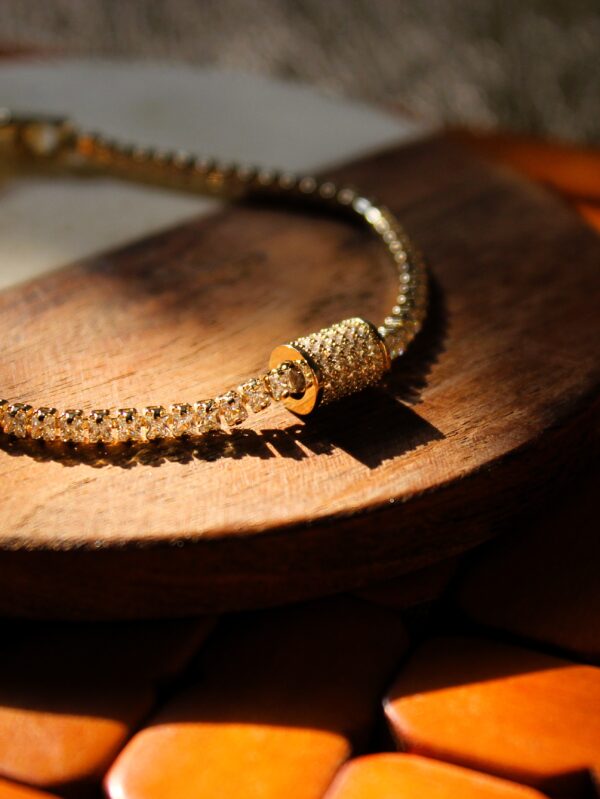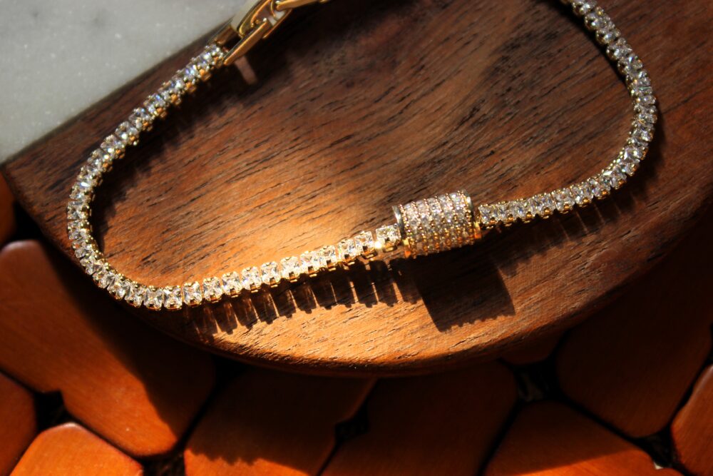 Elegance that catches every glance. The Radiant Glow Tennis Bracelet blends timeless charm with modern sophistication, featuring a line of brilliant stones set in gold tones.