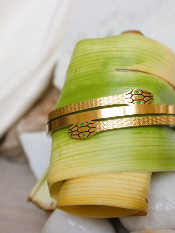 The snake bangle is a fierce fusion of elegance and edge, coiling around your wrist like a serpent. Crafted from luxurious metals or gemstones, it symbolizes transformation and protection. With its intricate design and fluid, lifelike movement, this bangle isn’t just an accessory—it’s a bold statement of power and style.